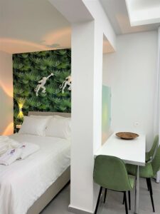 A suite full of the colour of calmness and rejuvenation! The green! Includes a double bed, sofa bed, big TV with Netflix, fully equipped kitchen and bathroom with shower. It can accommodate up to 4 people. AMA : 00001037284